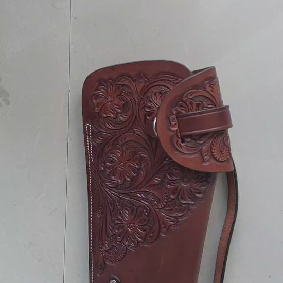 Step into the spirit of the Old West with this handcrafted 33-inch Western Rifle Scabbard. Made from premium full-grain leather, this gun cover features intricate hand-tooled floral carving, providing both rugged durability and authentic cowboy style. Designed to fit most lever-action rifles including Henry, Marlin 1895, Winchester 94, and Rossi, this scabbard is the ideal companion for hunters, ranchers, and western enthusiasts.