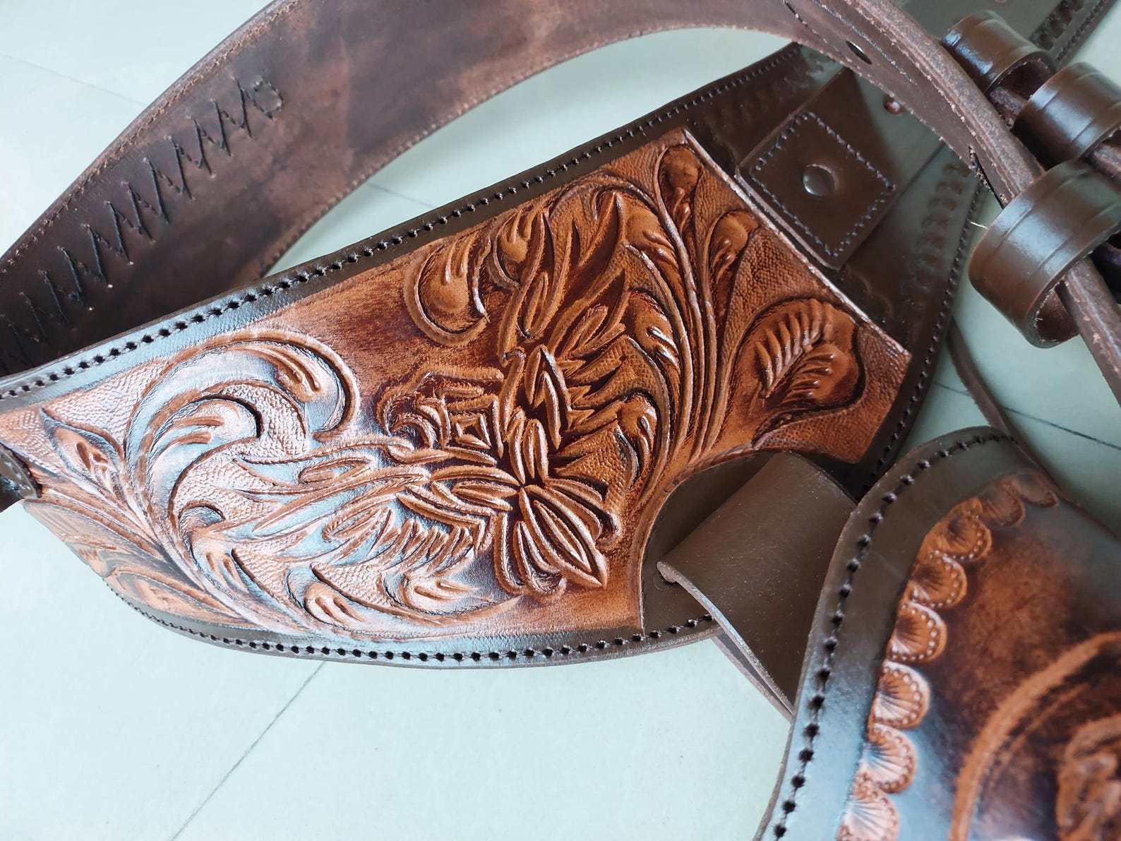 This Handmade Western Gun Holster Belt is the perfect fusion of rugged durability, old-school cowboy flair, and patriotic pride. Crafted from premium full-grain leather, it features stunning hand-tooled floral artwork with an embossed Eagle design, symbolizing freedom and strength.