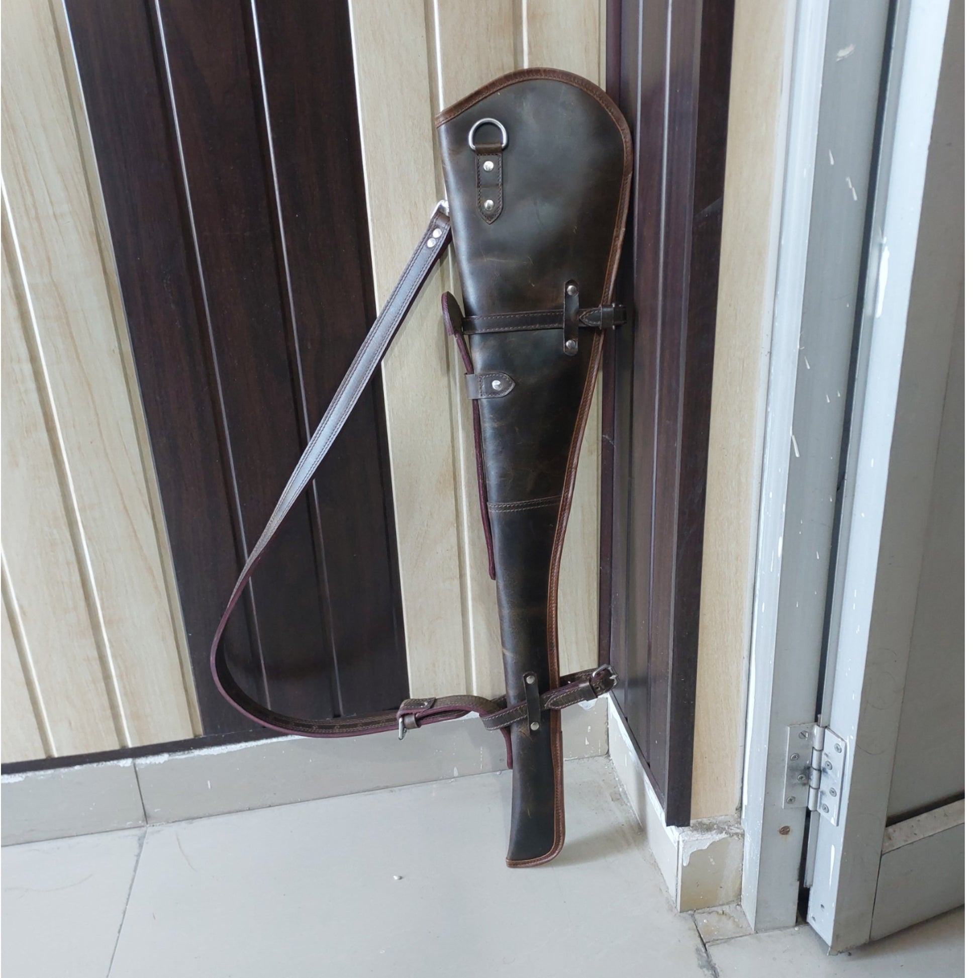 Western Leather Rifle Scabbard – 33" Long – Full Grain Brown Leather – Handcrafted Cowboy Gun Case with Adjustable Strap