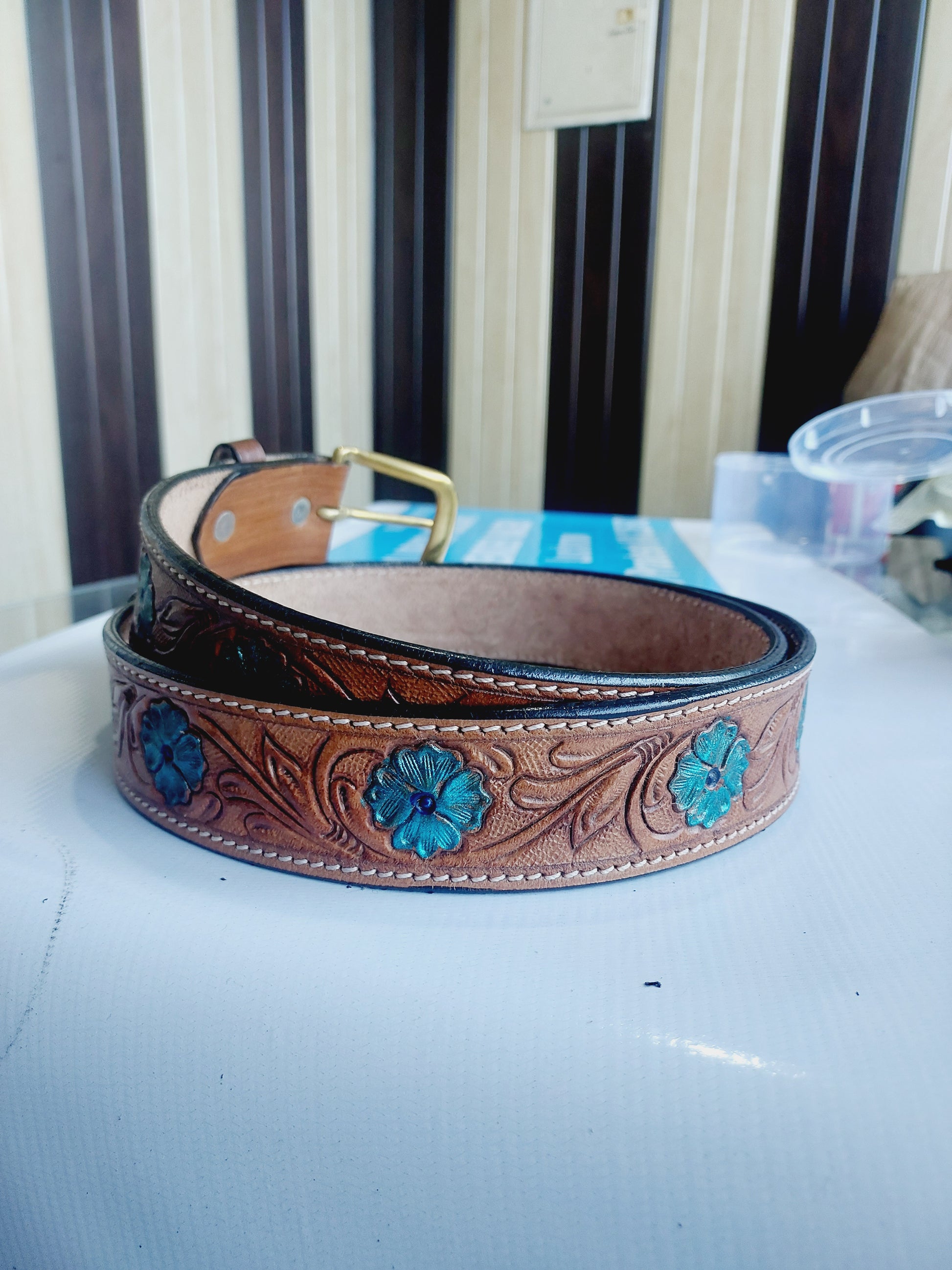 Western Cowboy Belt for Men – Handmade Carved Leather with Brass Buckle