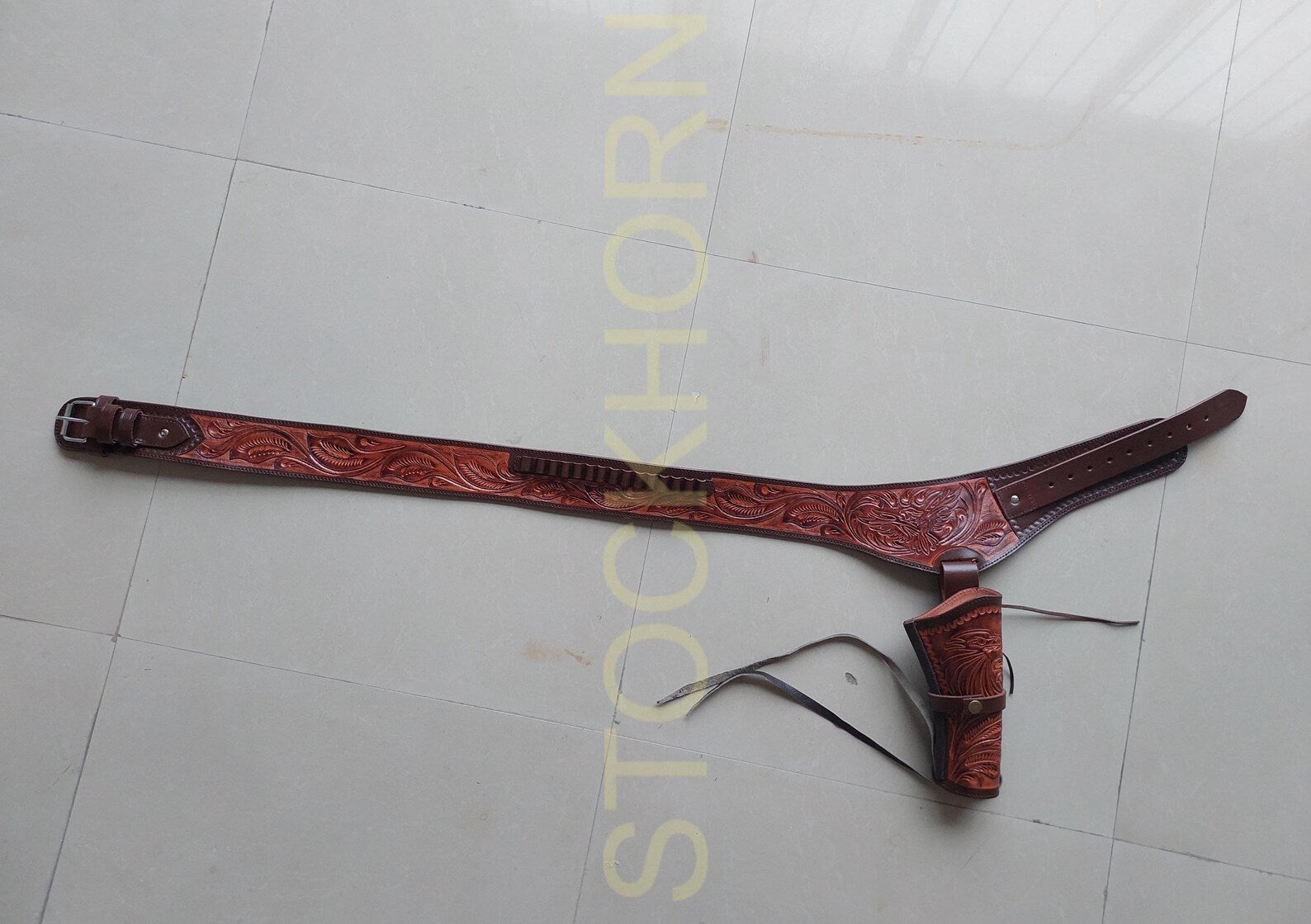 Authentic Western Look: Classic cowboy holster design with hand-tooled American Eagle detailing.