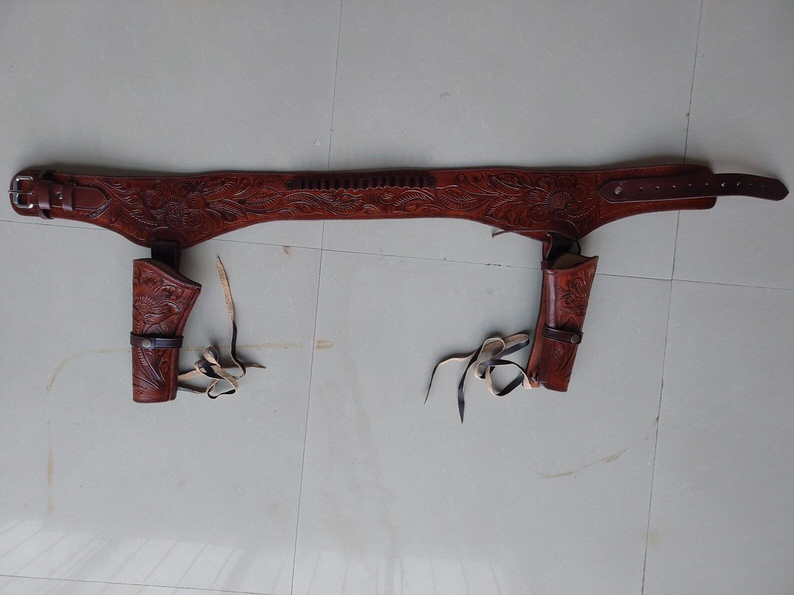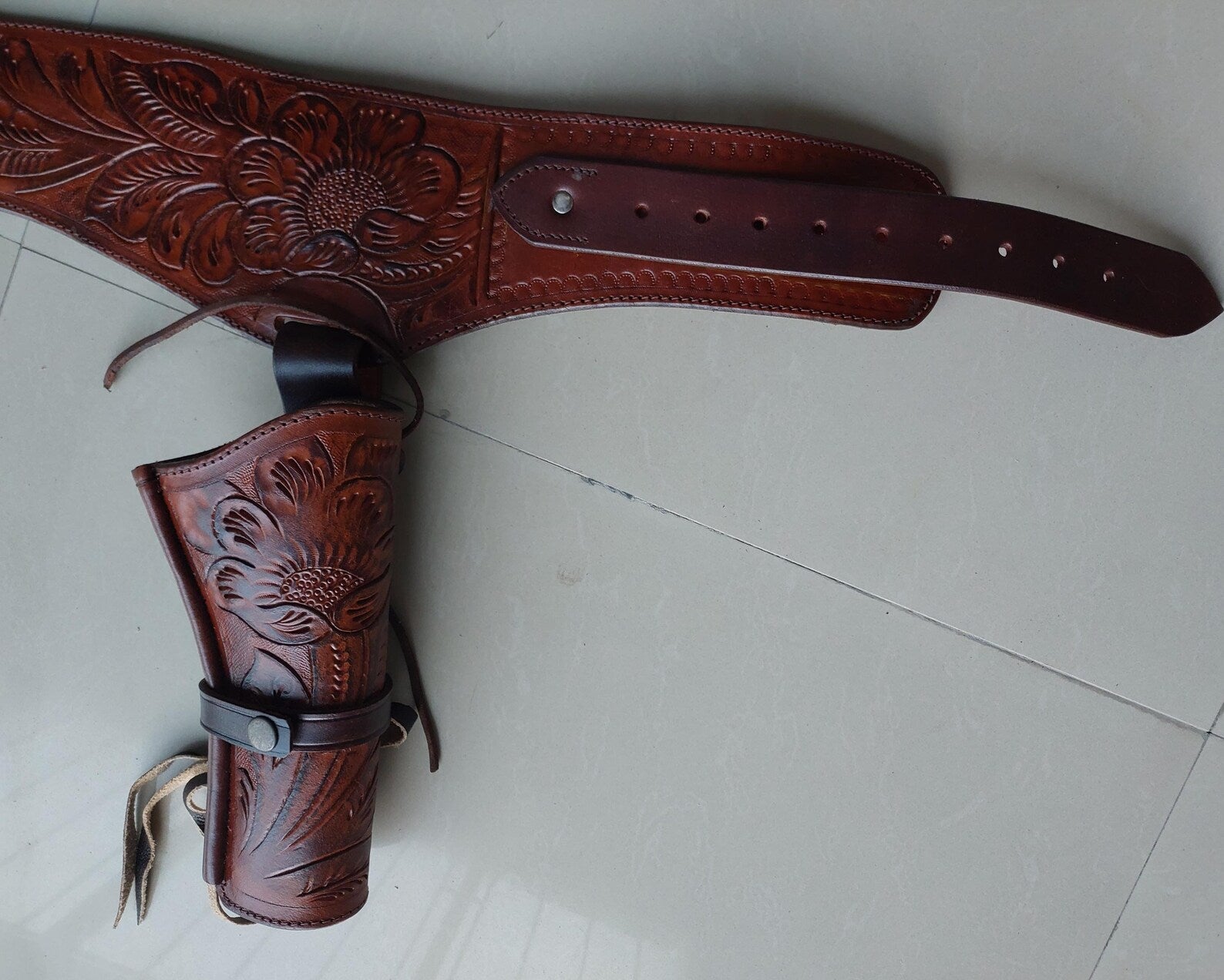 Step into classic cowboy tradition with this Western Gun Holster and Belt Set, custom handcrafted from dual-tone full-grain leather for a bold and authentic Western appearance. Designed to fit revolvers with 3.5" to 8.9" barrels, this rugged holster is compatible with popular calibers like .22, .38/357, .44/45, making it a versatile piece for shooters, collectors, and Western enthusiasts.